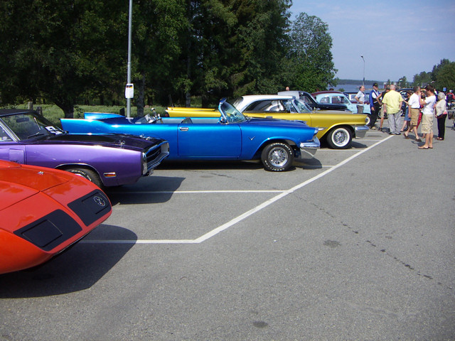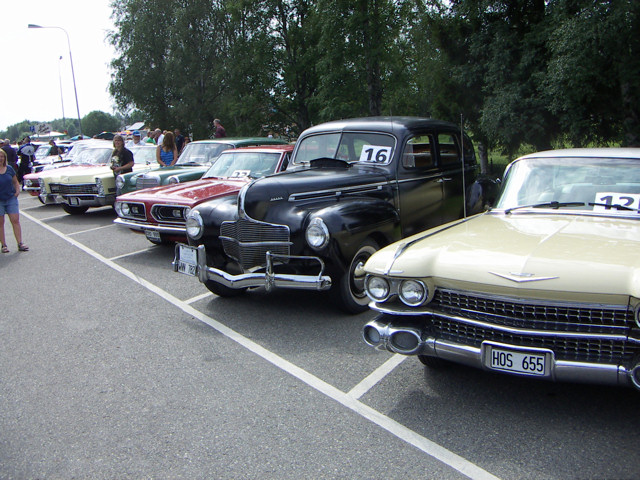 Bilutställning i samband med Brojubileum & Dundermarknad. Det är parkeringsplatsen ovanför gamla kyrkogården