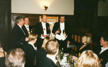 | Jamtkvartetten (Per Hårstam, Arne Sandemo, P-G Norman, Nils Sjölander) sjunger hyllningssång till förste dirigenten,