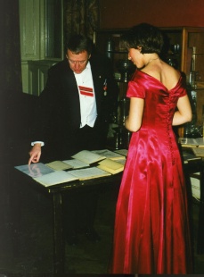 | Ordförande emeritus Björn Larsson med dam i stora trappan. Att Ni överhuvudtaget törs bjuda mig ...