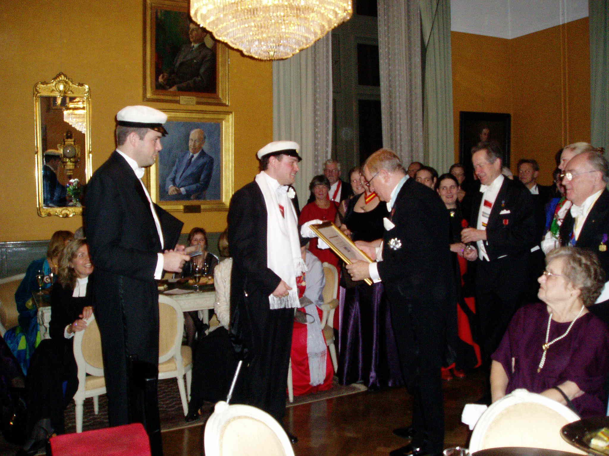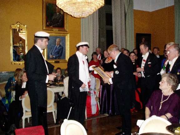 Efter konserten i Gula Salongen. CVD och CVN delar ut minnestavla från CV Stor bild |