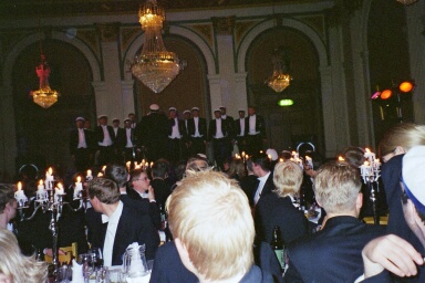 Kaprisfesten-Östgöta nation vy från CV-bordet tv: Karlstads manskörsbröder underhåller