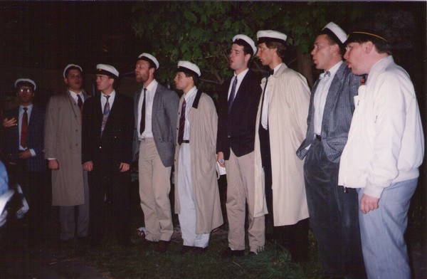 Repetition och konfonium inför natten hemma hos PG. Tenorsidan slipar på stämmorna.