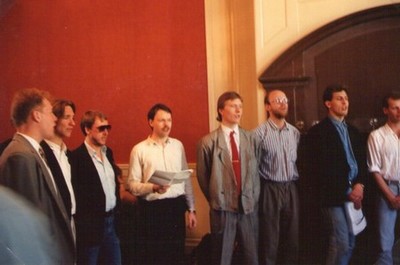 fr v: | Arne Sandemo (t2) Per-Johan Ahlzén (t2) Mikael Román (t2) Mikael Rydberg (b1) PG Norman (b1) Jan Vesterlund (b1) Peter Swartling (b2) Per Hårstam (b2) Björn Lundman (b2)