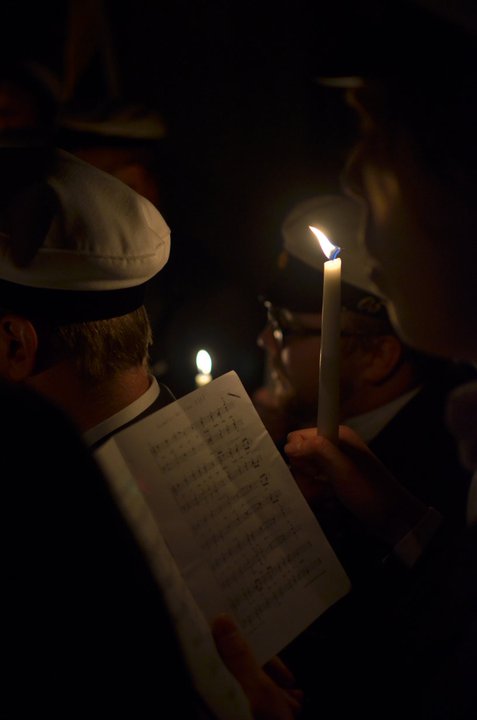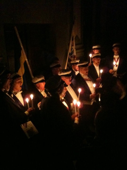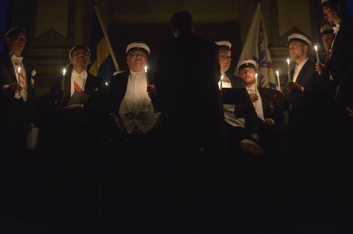 Den Svenska fanan, Nationsfanan och Chorus Virorum från södra sidotrappan.
