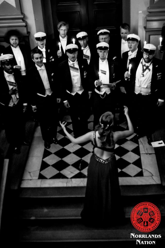 Den traditionella Trappserenaden efter sittningen - nattsserenaden i Stora Trappan - alltsedan 1890-talet.