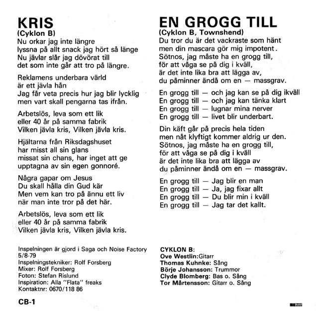 Inspelningstekniker: Rolf Forsberg. Producerad av Rolf Forsberg och Cyklon B.