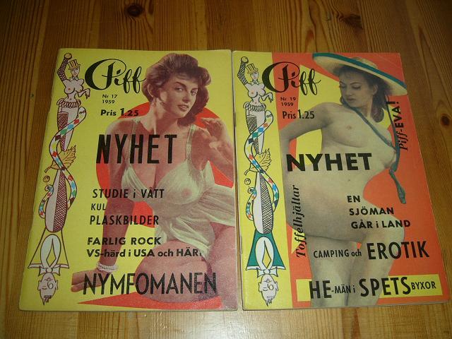 PinupptidningarPinupptidningarna (från "pin-up girl" - "pinuppbild") såldes i kiosker efter andra världskriget, innan dess köptes de vanligtvis på postorder ("diskr.avs.") eller hos frisörer. Beteckningen levde kvar fram mot slutet av 1960-talet då innehållet gradvis blev grövre, mer pornografiskt, och man började kalla tidningarna "porrtidningar". |