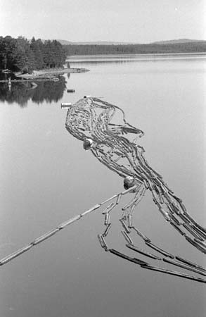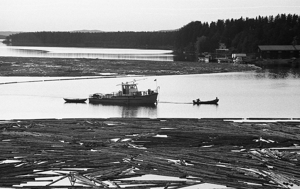 Bilder tagna från bron av Björn Zakrisson ca. 1976. Flottningsbåten heter