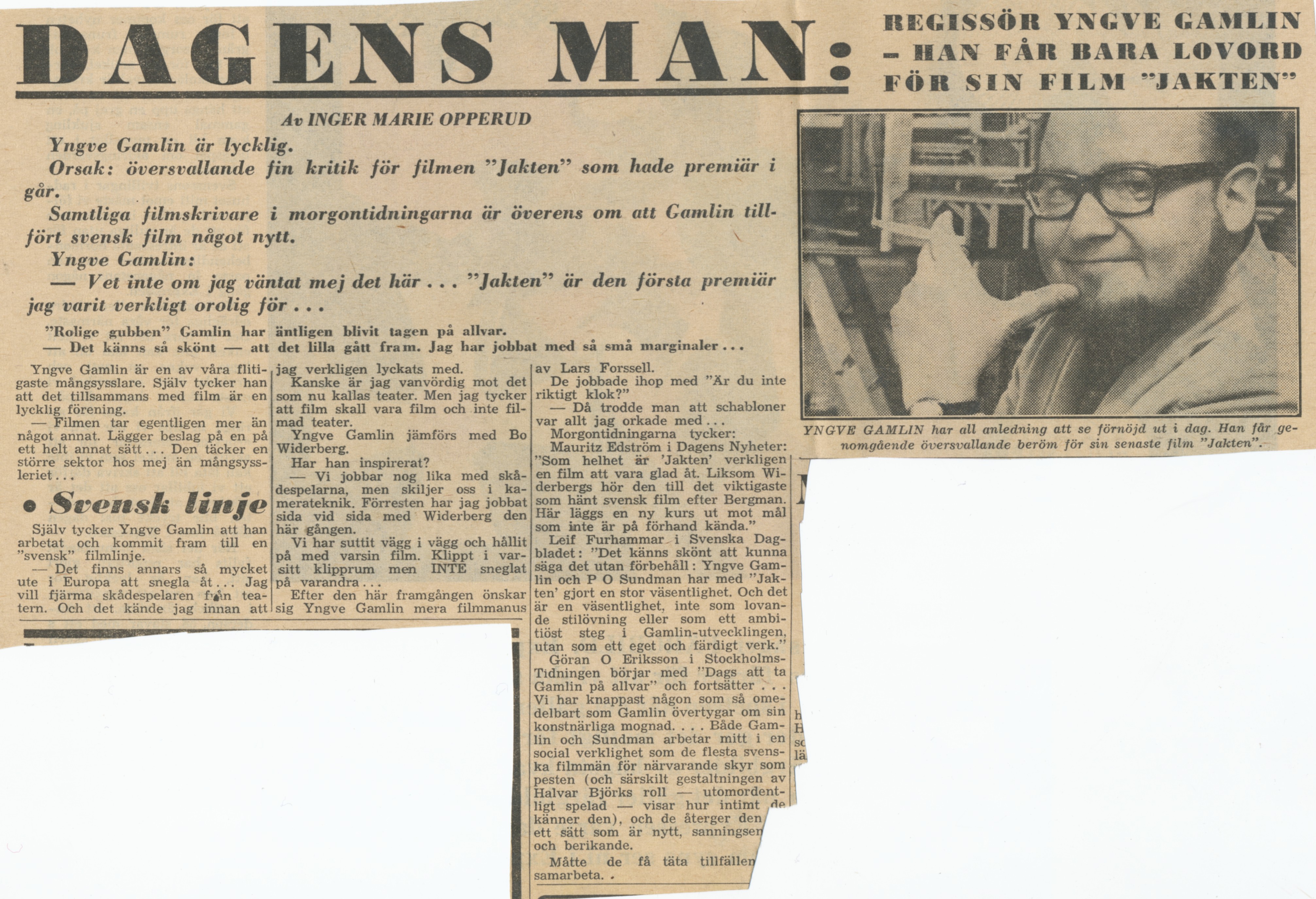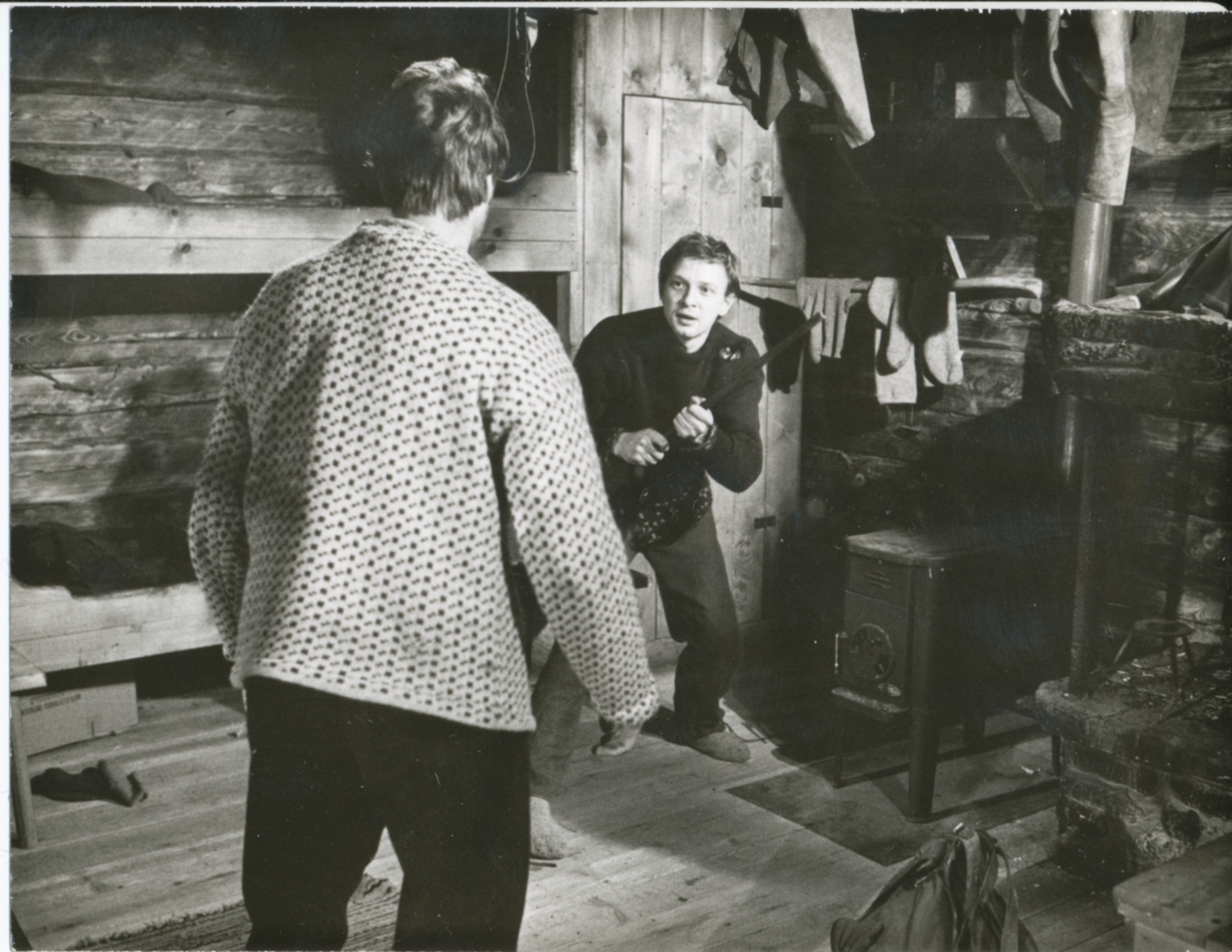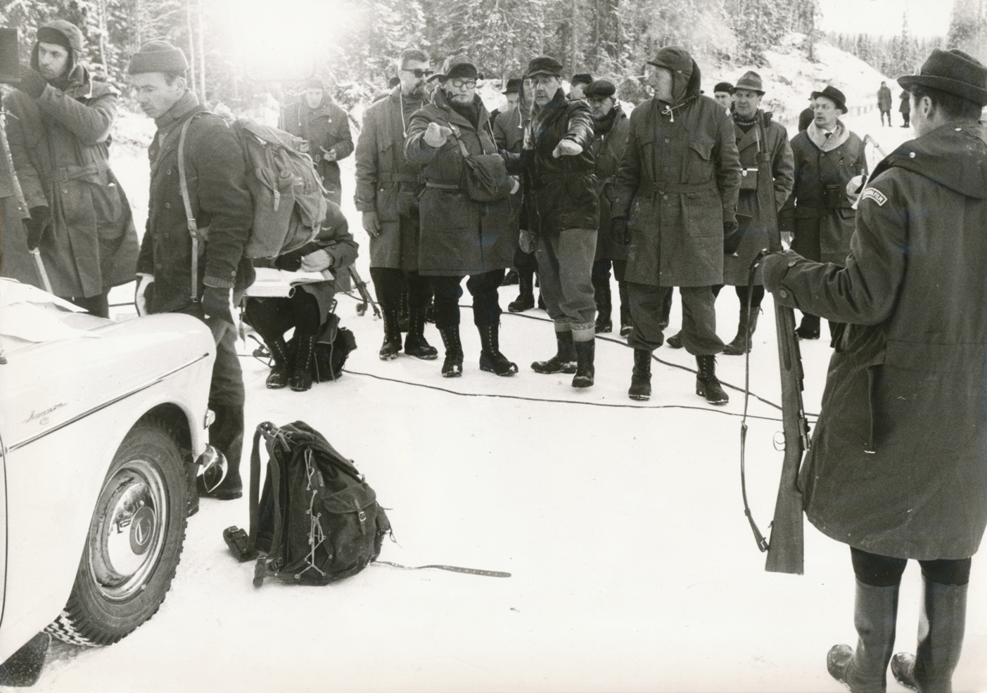 Bilder från inspelningen av filmen Jakten (1965) Filmen belönades med Silverbjörnen vid Filmfestivalen i Berlin 1966.