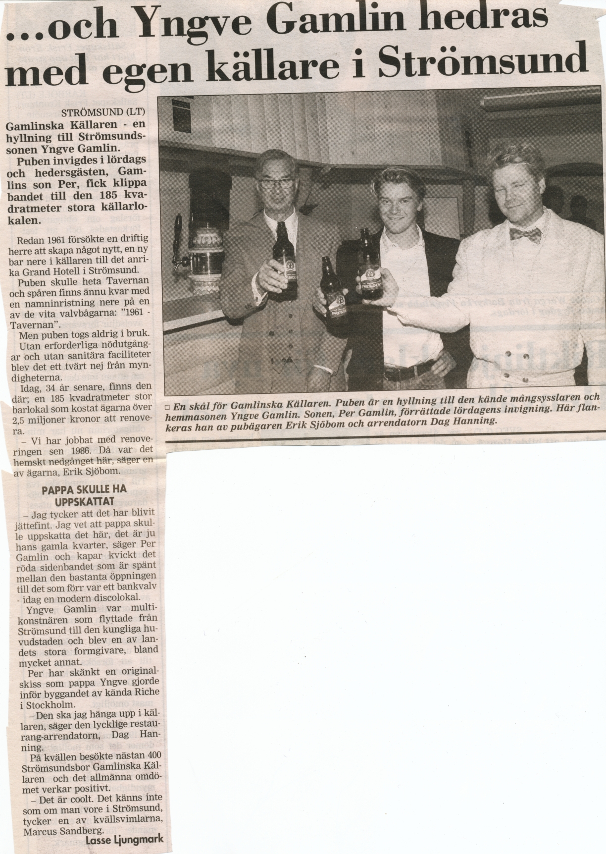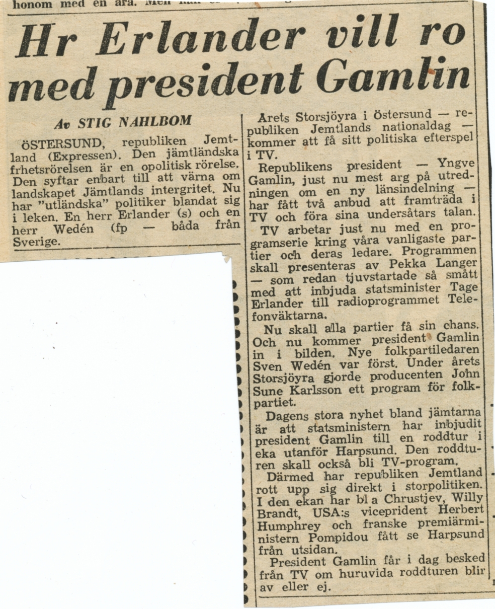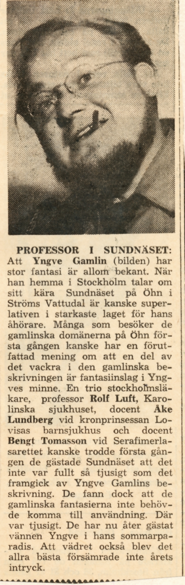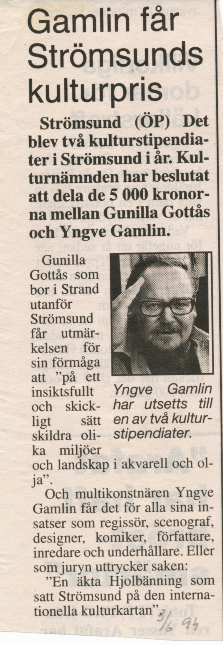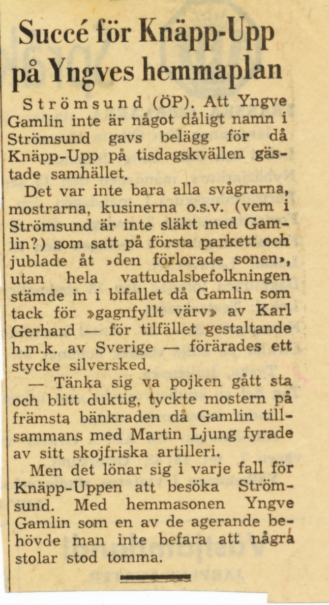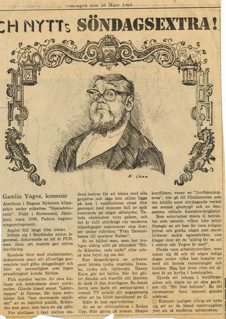 Tidningsklipp om Yngve Gamlin