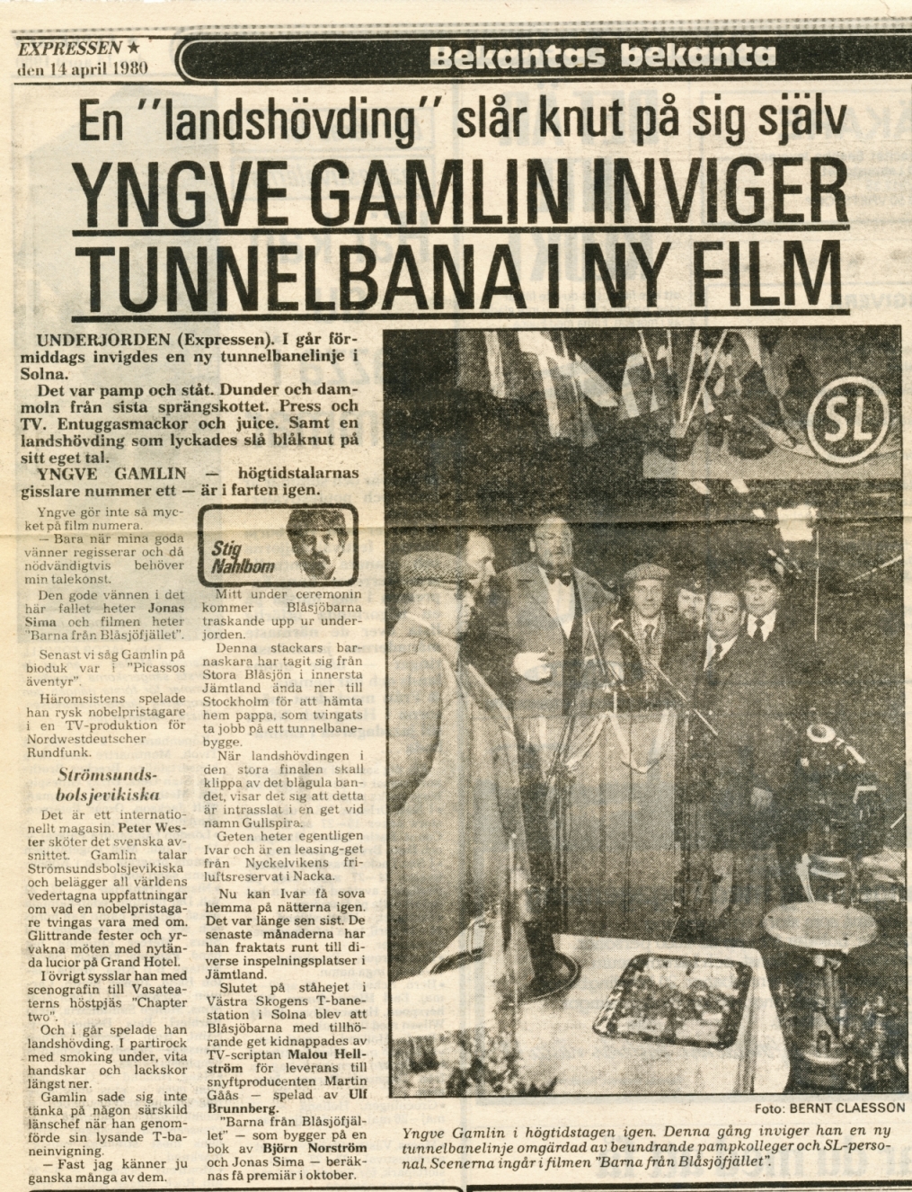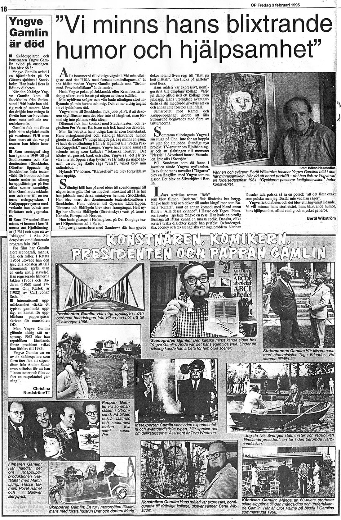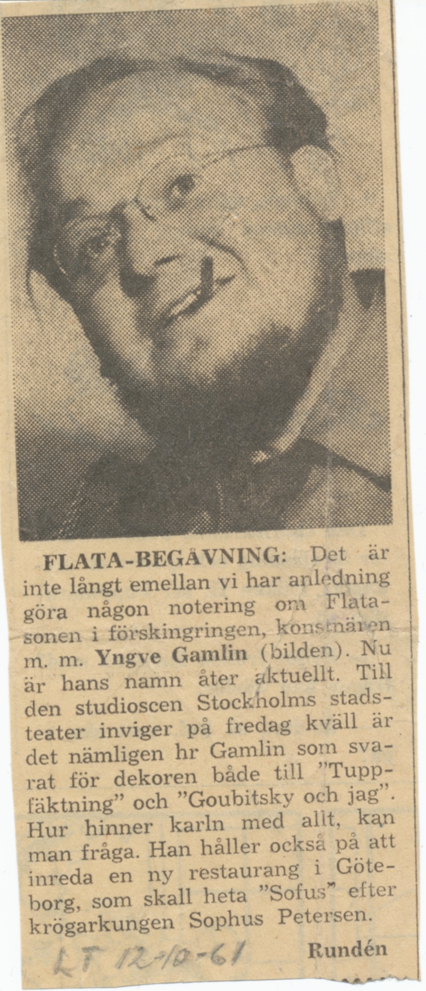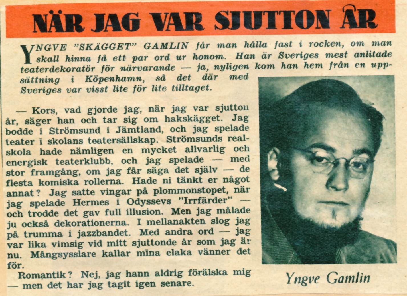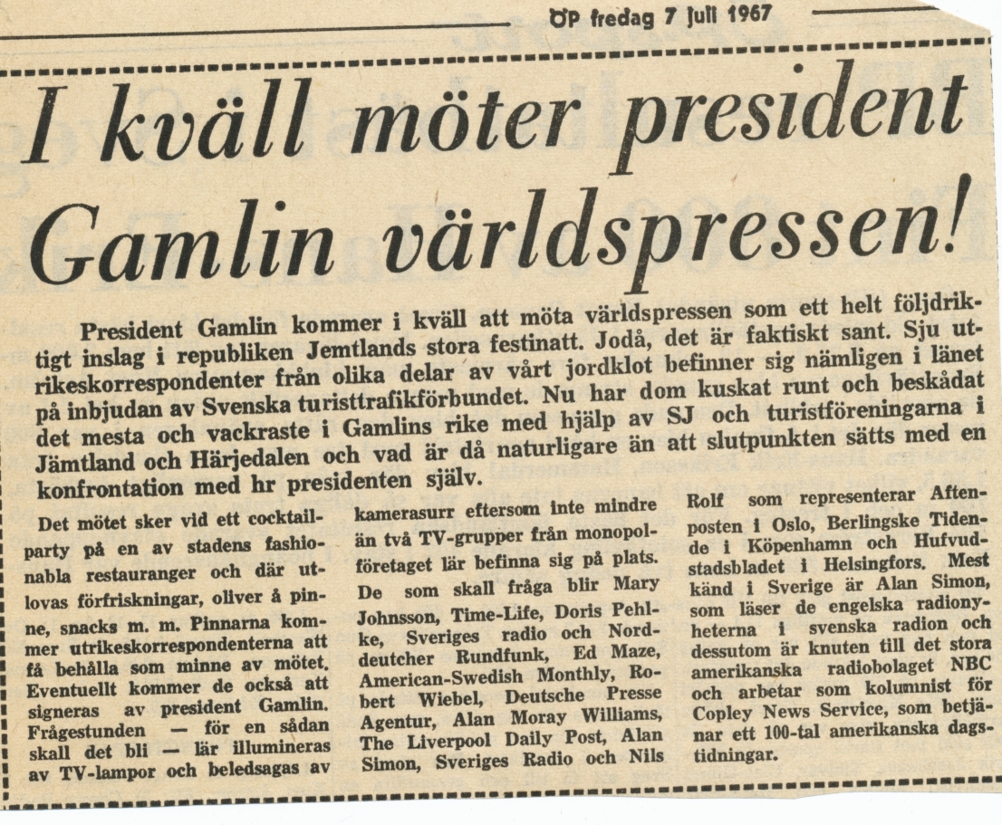 Tidningsklipp om Yngve Gamlin