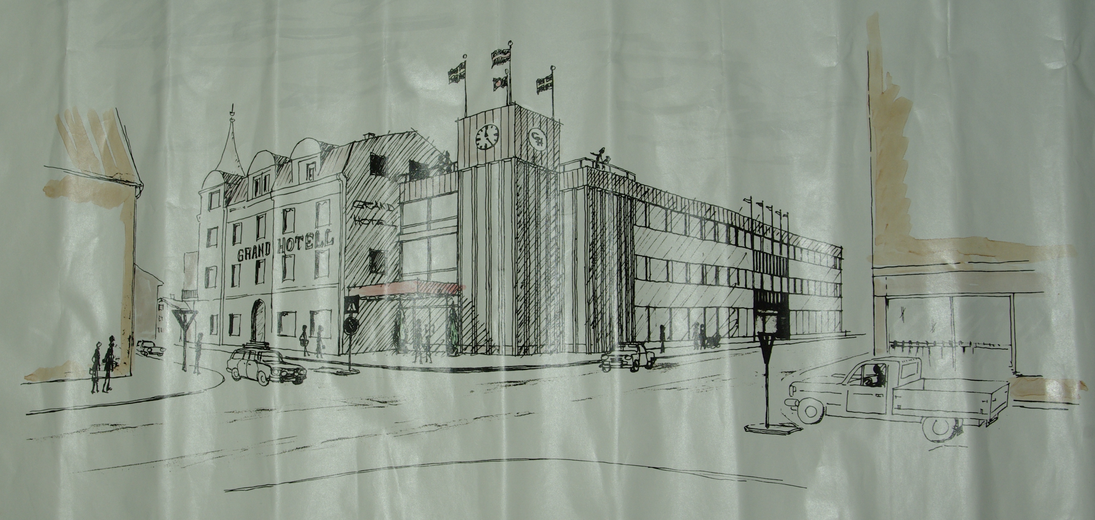 Förslagsskisser och ritningar för centrala Strömsund 1972-73