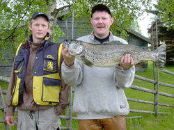 Team Fiskmås, Hansi Engström och Niklas Sivertsson med öringen