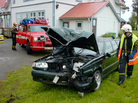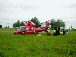 Ambulanshelikopter rekvirerades som förde de skadade till sjukhuset i Umeå för akutvård efter olyckan i Hallviken. Foto: Holger Persson |