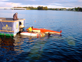 ner i djupet vid olyckan utanför Öhn i Ströms Vattudal