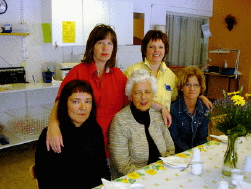Barbro Norrman och Eivor Pålsson står bakom Tina Ottosson, Dagny Eriksson och Cecilia Borg. Dagny Eriksson var med och startade Flatatappen den 7 mars 1994. Enhetschef Britt-Inger Allberg, deltog också vid Flatatappens sista