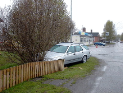 En av bilarna lämnades cirka 50 meter från bilföretaget sedan gärningsmännen kört fast i en häck. Foto: Holger Persson |
