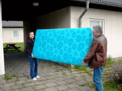 Maria Alm får hjälp av pappa Bo att flytta bohaget när