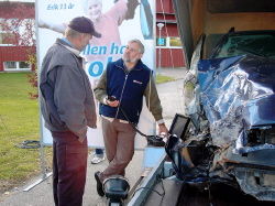 Bengt Persson lyssnar på Kent Ivarsson om alkohollåsets nytta och tycker att det låter väldigt bra. Text/Foto: Holger Persson |