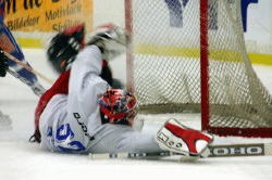 Mattias Hägglund tog 48 av 52 skott när Strömsund nådde 4-4 mot Kramfors i går. Foto: Holger Persson |