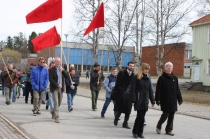 Ingen trängsel på första maj - bara de trogna hade samlats På Vattudalstorget i Strömsund samlades ett 50-tal åhörare
