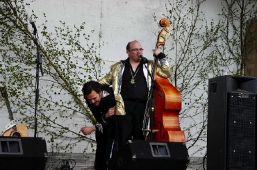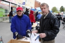 Elvis Koskinen söker lä bakom en stabil Lars Vegas när isvindarna sveper in över scenen så björkarna trillar omkull. Foto: Holger Persson Jan-Ola Bergkvist köpte tunnbröd av Yvonne Karlsson, Stamselevikens Tunnbröd. Foto: Holger Persson |