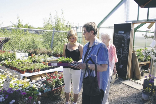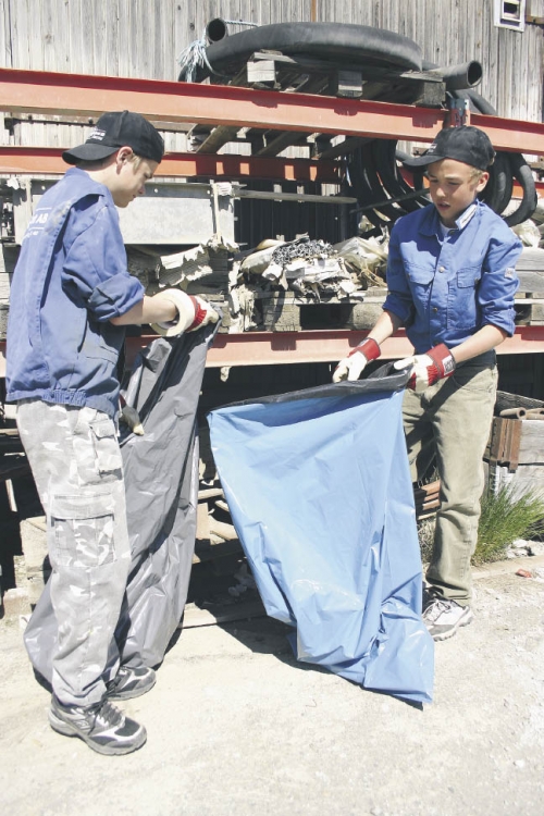 Doris Persson handlar blommor av Gabriella Åhlstedt, 8a2 Vattudalsskolan, som gjorde sitt dagsverk på Granngården med att sälja blommor. Foto: Holger Persson Ted Åström och Kristian Ljungberg, 7B Vattudalsskolan, gjorde sitt dagsverk med att städa runt fabriken SCF Betongelement AB. |