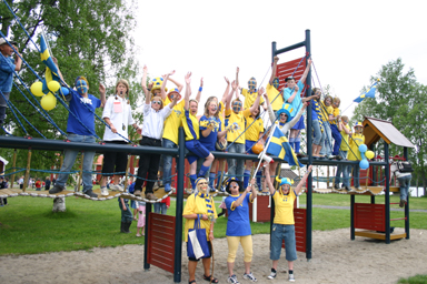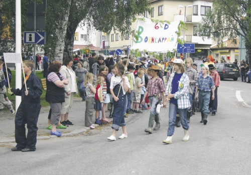 Spelmanslag tog täten i en pampig fanparad Nationaldagsfirandet i Strömsund startade vid Kommunalhuset med