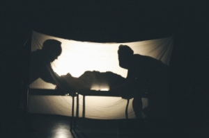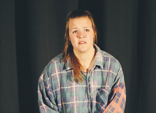 Anna Nyhlén har på egen hand skrivit pjäsens manus. Här ses hon i en av sina roller. Våldtäkt är några av de ämnen som pjäsen tar upp. - Vi i teatergruppen har hjälpts åt och regisserat de tunga scenerna, säger hon. Foto: Holger Persson |