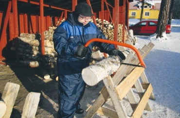 Kent-Sture Thåqvist arbetar på Kajen och sågar björkved. Han trivs bra med det, men önskar sig en vän som kan hitta på roliga aktiviteter på kvällar och helger. Foto: Holger Persson |