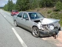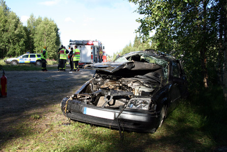 lindrigt. Bilen hamnade först i diket och voltade sedan rakt över