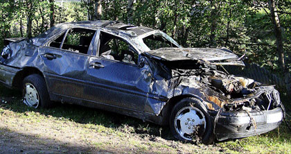 Olycksbilen. En man dog och två andra skadades allvarligt i singelolyckan