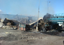I natt brann det på sågverket i Sikås. Kontorshuset och såghuset har brunnit ner. Området är avspärrat då det finns gastuber på platsen och det finns risk för explosion. Foto: Holger Persson |