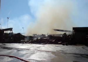 Branden var omfattande och 20 brandmän fanns på platsen för att arbeta med släckningen.Såglinjen och kontorshuset gick dock inte att rädda. Foto: Holger Persson |