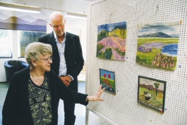 Peter Sandin och Marie Hemmingsson i bakgrunden står Ströms konstklubbs ordförande Leif Myrén. Text/Foto: Holger Persson Text/Foto: Holger Persson |