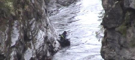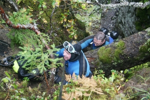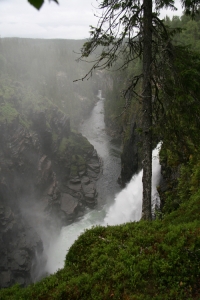 Dykare har under helgen letat efter den försvunna turist som tros ha fallit ner i Hällingsåfallet ett par mil väster om Gäddede. Det är en österrikisk kvinna i 30-årsåldern som befaras ha omkommit, men man har fortfarande inte hittat henne. Foto: Holger Persson |