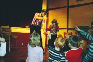 trollstavarna. Barnen och vuxna hade väldigt roligt åt Clownen Olles trollerier. - En Clown, är en bra förälder att jämföras med och har aldrig varit något problem för mig, säger Olle af Klintberg på frågan om att alltid bli förknippad med sin far Manne. Text/Foto: Holger Persson. |