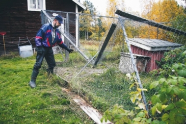 Kjell Nordin inspekterar hundgården som fick sig en rejäl