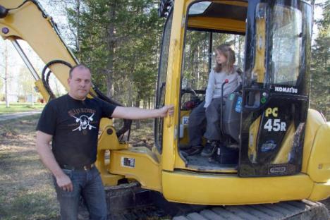 ÖP 2009-05-18 http://op.se/stromsund/1.1050171 David nära slå ut eliten på Gräv-SM David Thomasson jobbar till vardags med mässor på Engcon i Strömsund. I helgen kom han trea i Gräv-SM i konkurrens med gräveliten. När den nya 400 kilovoltsledningen mellan Järpströmmen och Nea började byggas förra hösten hade entreprenörerna missat att lägga ut stockmattor på känsliga och blöta myrar. Resultatet blev sönderkörda marker med decimeterdjupa hjulspår. Svenska Kraftnät borde kanske ha anlitat David Thomasson i Strömsund. För i helgen bevisade han att han med skopans hjälp både kunde lägga ut slipers så att de blev stockmattor och sedan köra en tung grävmaskin från kon till kon ovanpå utan att ens vidröra marken under. Sådana moment ingick i Gräv-SM i helgen. Mästerskapen arrangerades för tredje året i rad av Engcons konkurrenter Steelwrist i Barkaby utanför Stockholm. Det var därför David Thomasson bestämde sig för att vara med. Bara som en kul grej samtidigt som det var en maskinmässa. De andra som var med är yrkeschaufförer. Jag gräver bara ibland på kvällarna på somrarna. I semifinalen var vi åtta stycken. Då vann jag. Men i finalen gick det lite för långsamt. Förutom att köra en tung maskin på en stockmatta ingick bland annat att göra en liten slänt och lyfta upp en boll på krönet som sedan skulle rulla ned och landa i toppen av en liten rörmynning. Det skulle symbolisera att grävjobb ofta görs när det är trångt. Runt en dagvattenbrunn till exempel. Alla fyra momenten klarade David av felfritt. Det är lite kul att jag som aldrig kör till vardags blev trea, säger David Thomasson. Men att byta jobb vill han inte. Nej. Det är roligast att jobba för Engcon. |