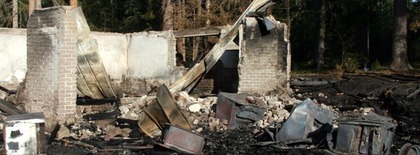 Den nedbrända byggnaden på bilden är en av de bränder som deltidsbrandmannen misstänks ha varit inblandad i. Foto: Holger Persson |