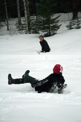 De Thailändska gästerna hade väldigt roligt i djupsnö. Foto: Holger Persson. |