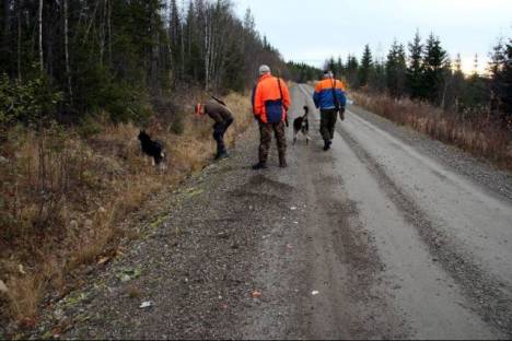 En eftersöksgrupp försöker ta reda på om den påkörda björnen är skadad. Foto: Holger Persson |