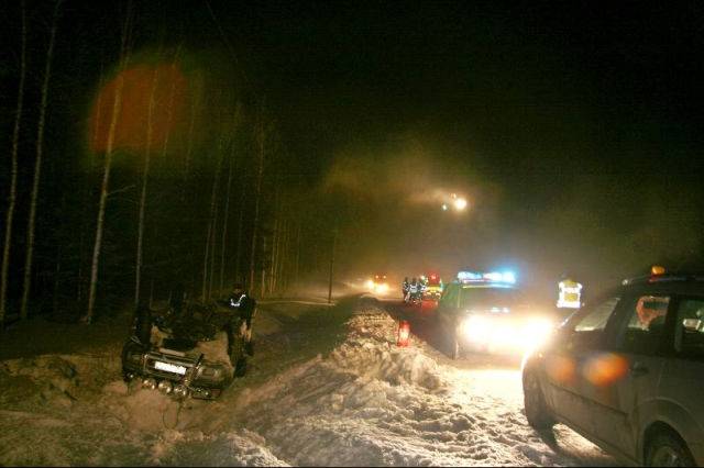 Det var som synes halt på E 45 i Muråsen på onsdagskvällen. Kvinnan i olycksbilen fördes med ambulanshelikopter till Östersund. Kvinnans bil blev liggande på taket i diket efter avkörningen. Foto: Holger Persson. |