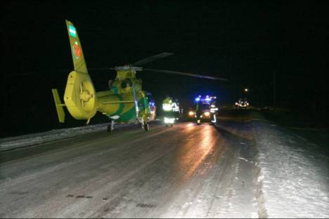 Ambulanshelikopter för skadad kvinna |