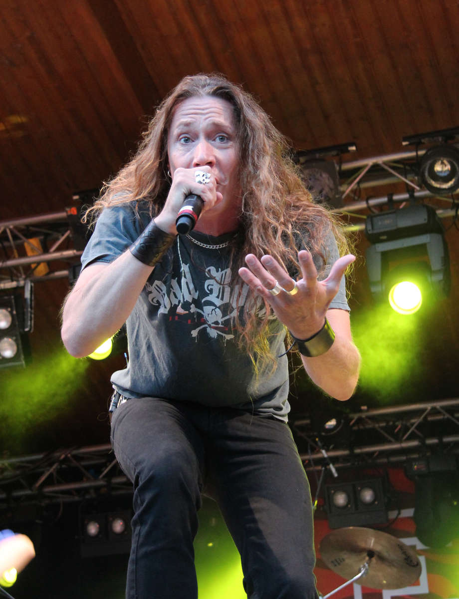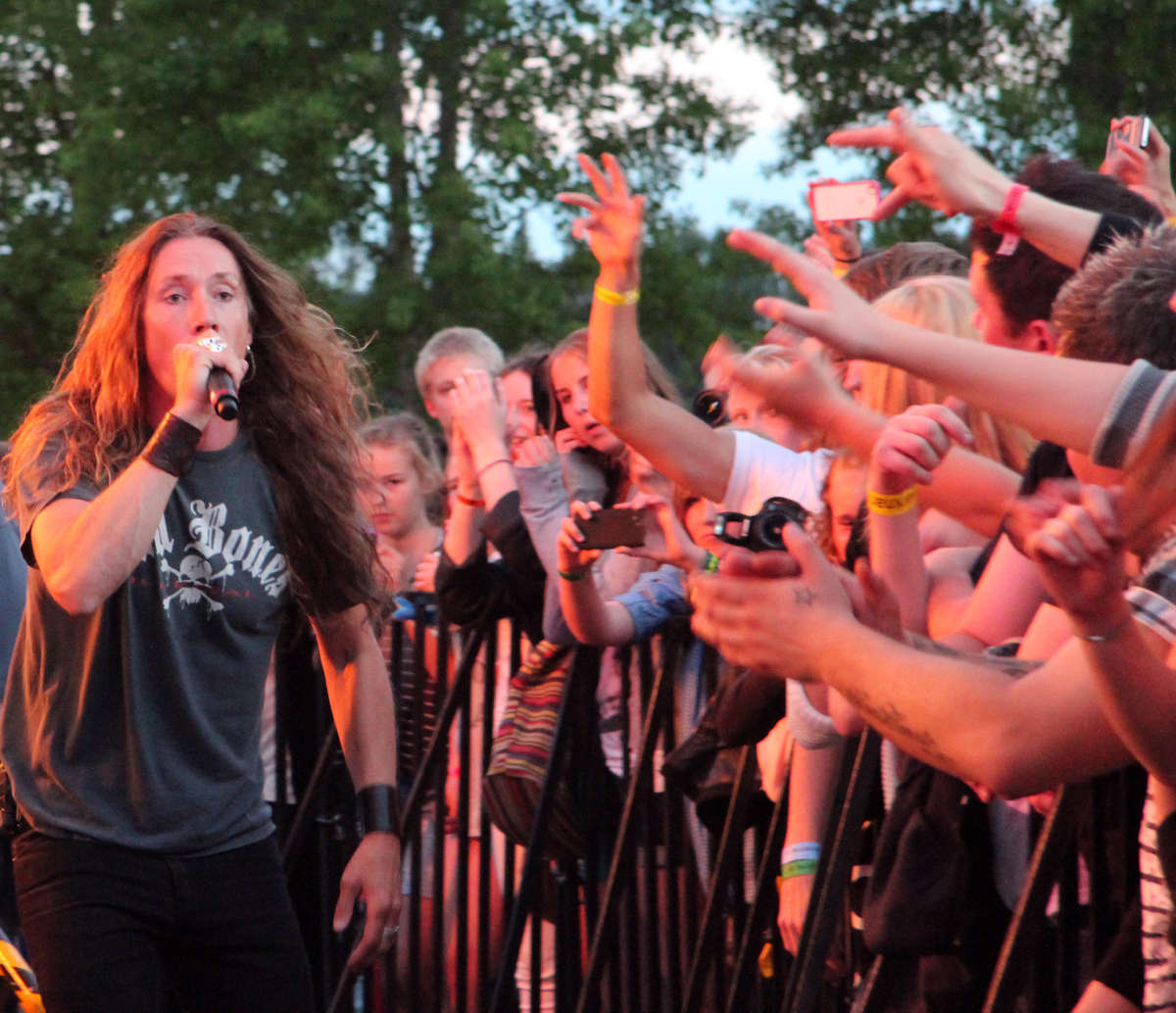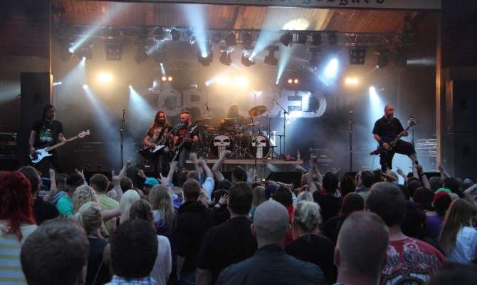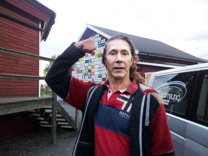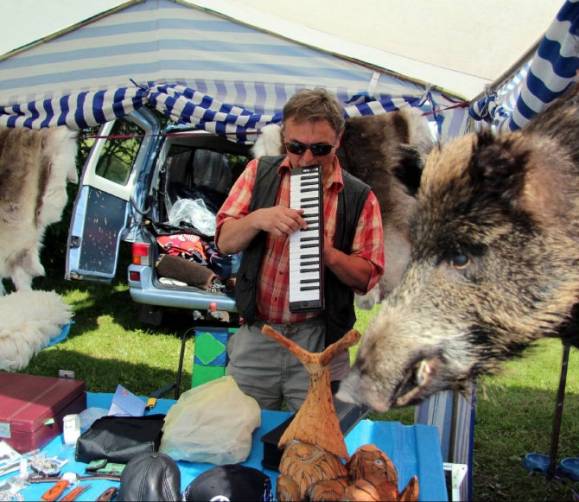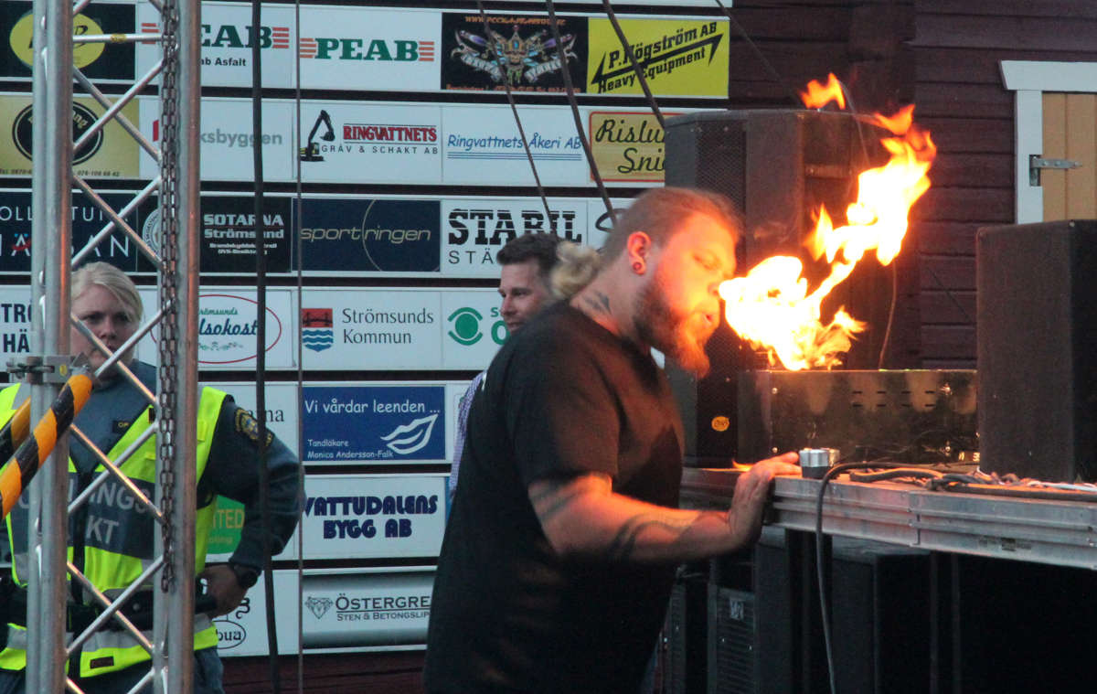 Musikern Jerry Tomasiak underhöll och sålde diverse prylar i sitt stånd. Hårda tag blev det när Ångebandet Corroded stod på scenen i går kväll |