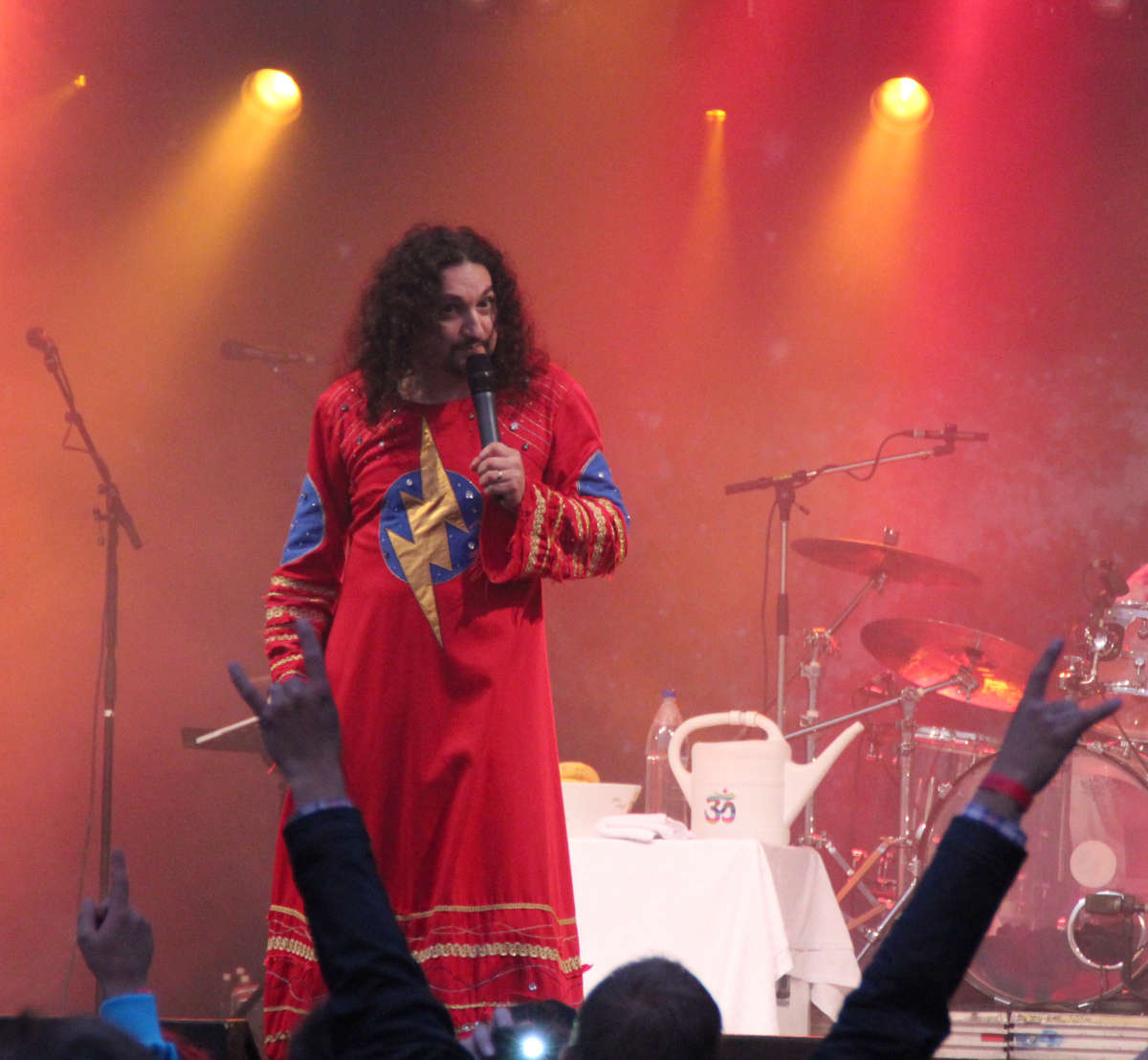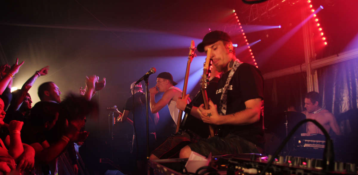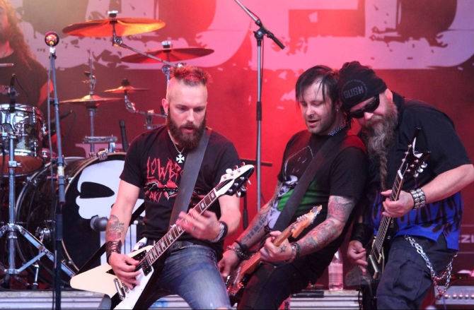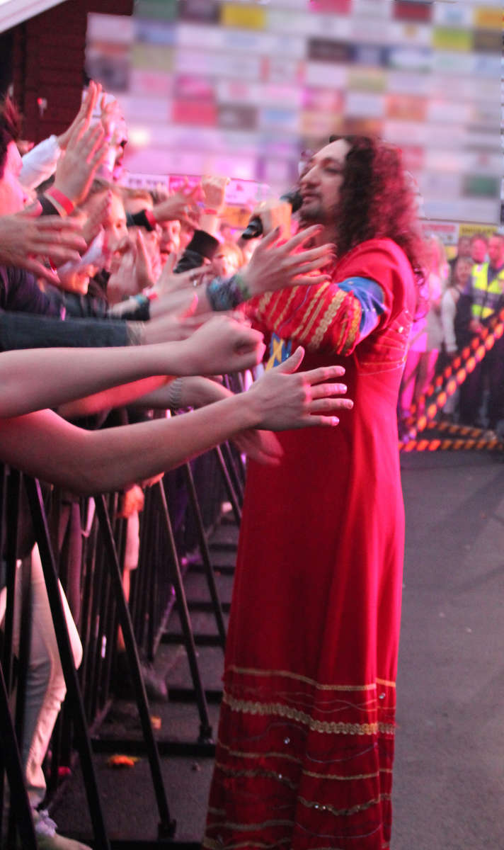 Musikern Jerry Tomasiak underhöll och sålde diverse prylar i sitt stånd. Hårda tag blev det när Ångebandet Corroded stod på scenen i går kväll |