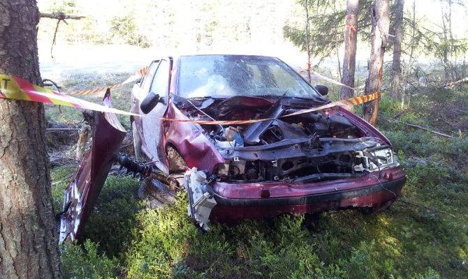 En singelolycka inträffade vid 6-tiden på torsdagsmorgonen i Vågdalen efter vägen mot Ramsele från Strömsund. Foto: Holger Persson. |
